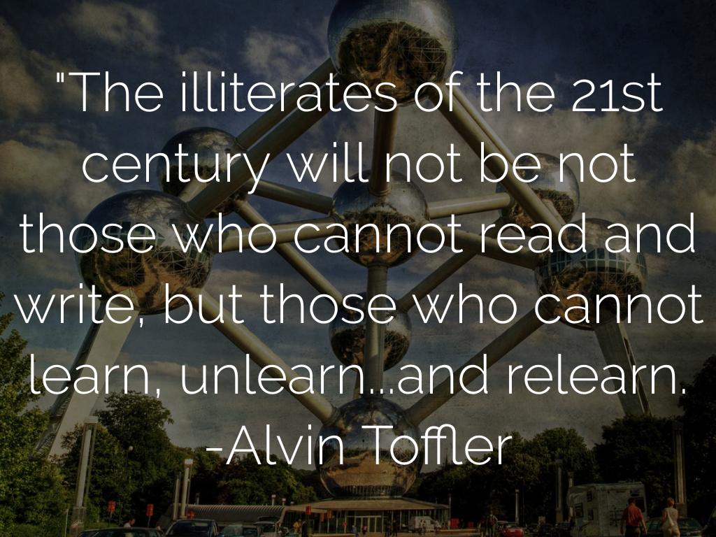 "The illiterates of the 21st century will not be not those who cannot read and write, but those who cannot learn, unlearn...and relearn.