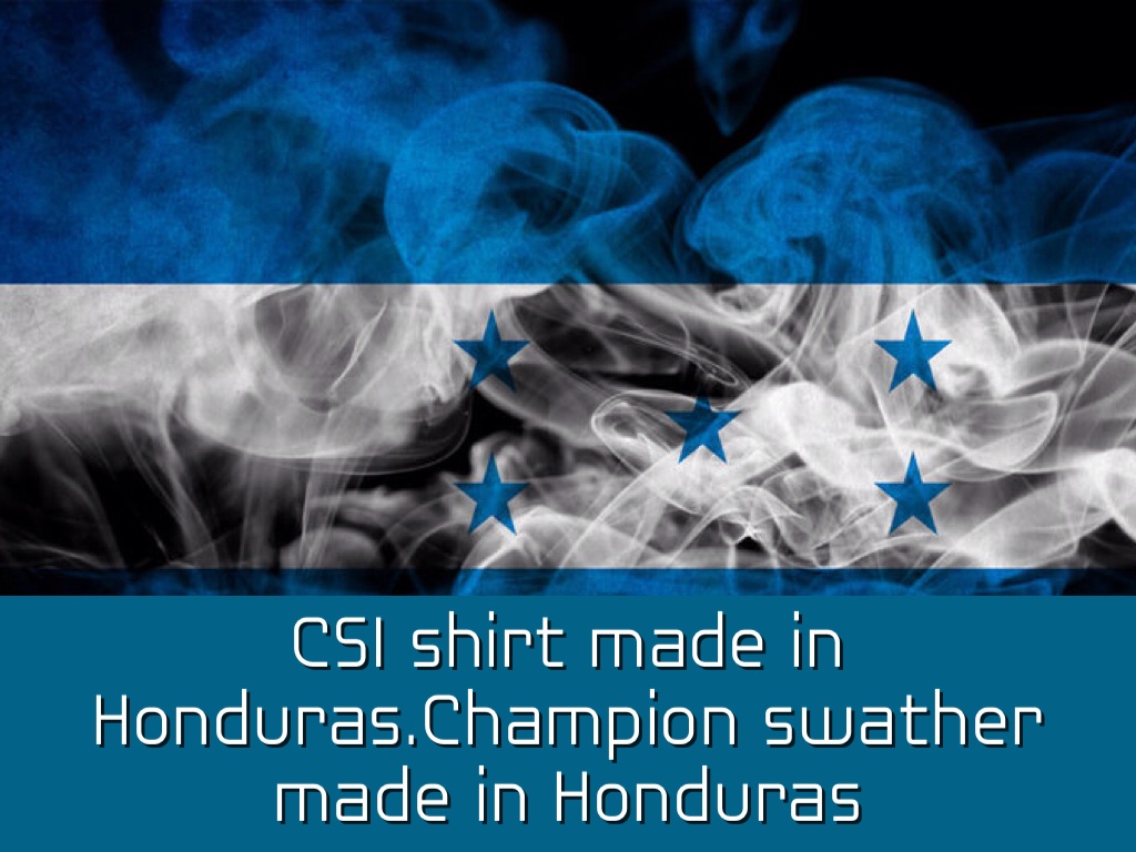CSI shirt made in Honduras.Champion swather made in Honduras