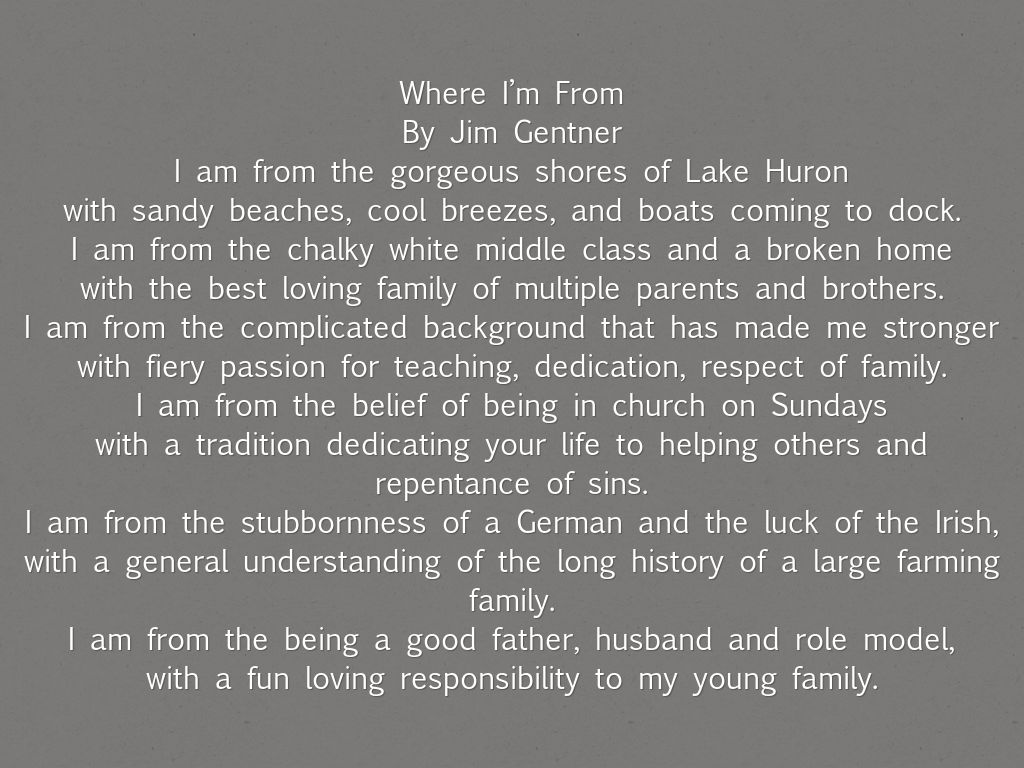 Marygrove LLE 610 - Where I am From Poem Jim Gentner