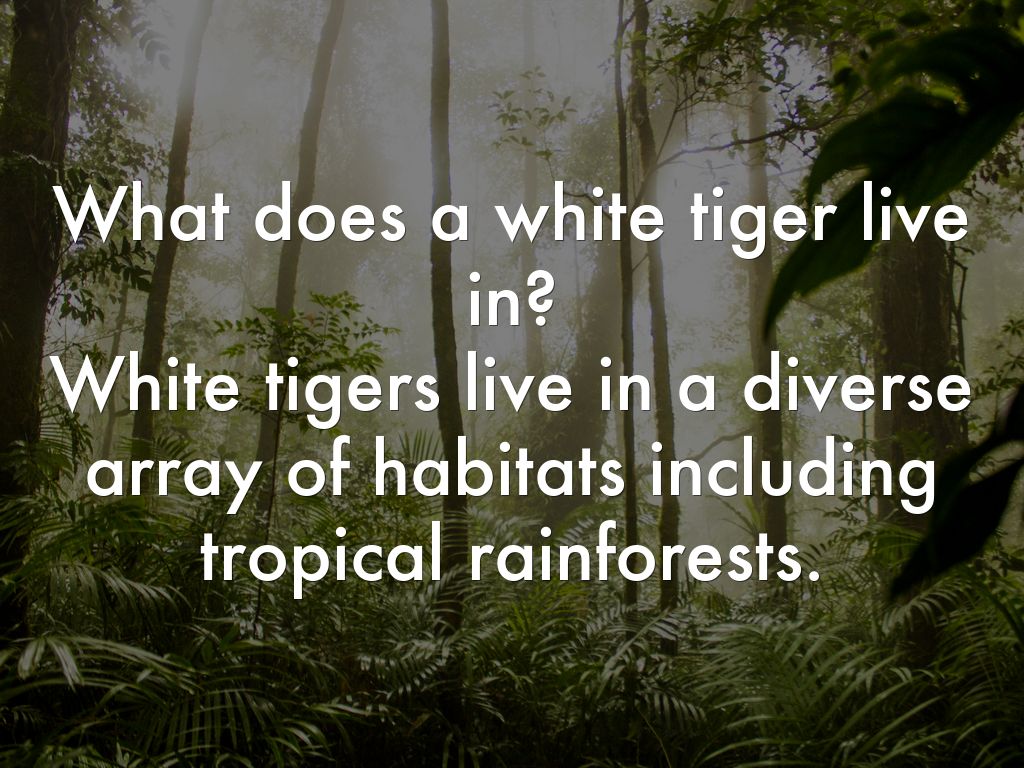 White tigers live in a diverse array of habitats including tropical rainforests.