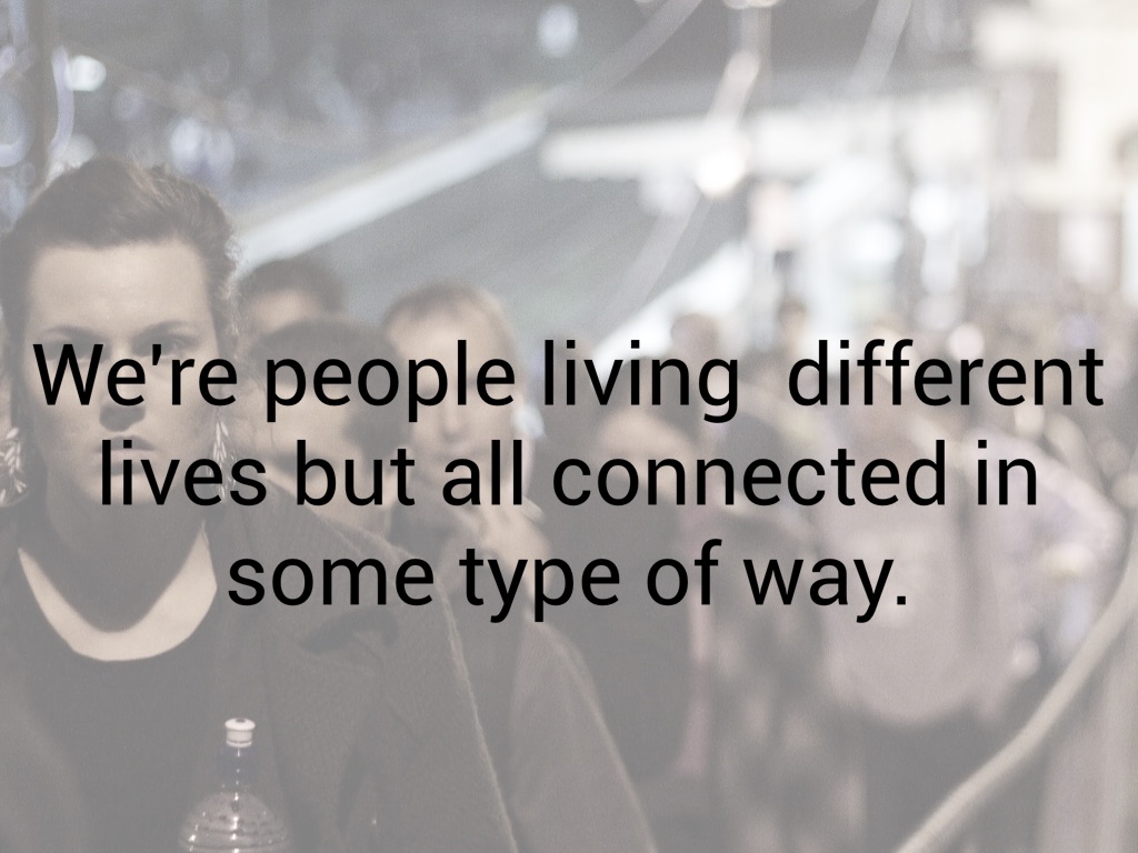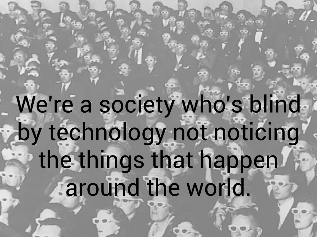 We're a society who's blind by technology not noticing the things that happen around the world.