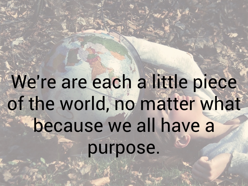We're are each a little piece of the world, no matter what because we all have a purpose.