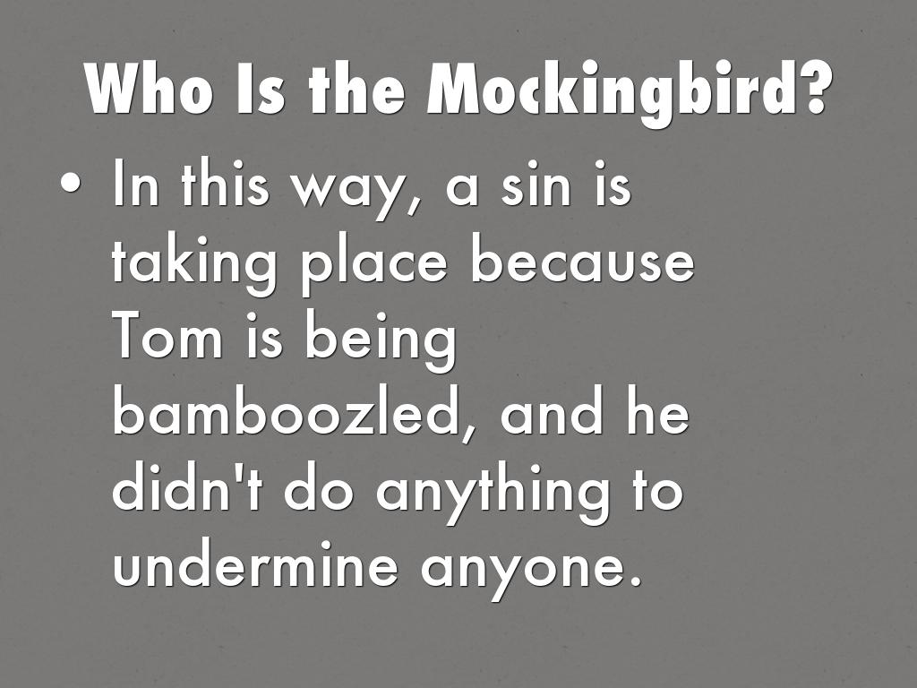Tom Robinson is the mockingbird because, like the harmonious creatures, Tom tried to make peace with everyone, and his existence caused no ruin. In addition, he is always thinking of others, and a prime example of this is when he is speaking on the stand at his trial.
