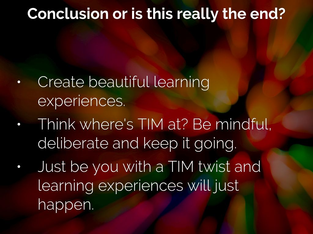 • Just be you with a TIM twist and learning experiences will just happen.