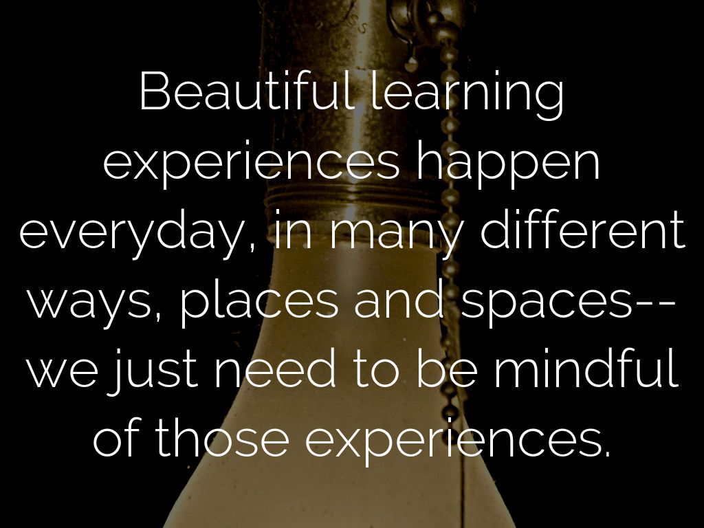 Beautiful learning experiences happen everyday, in many different ways, places and spaces--we just need to be mindful of those experiences.