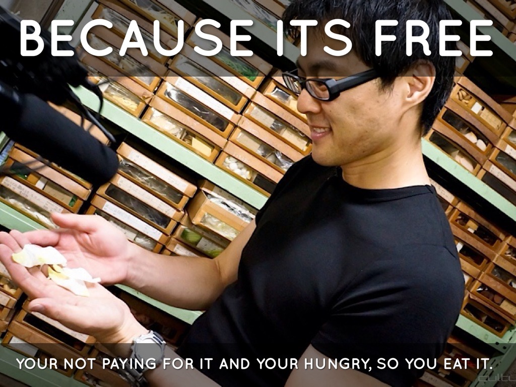 YOUR NOT PAYING FOR IT AND YOUR HUNGRY, SO YOU EAT IT.