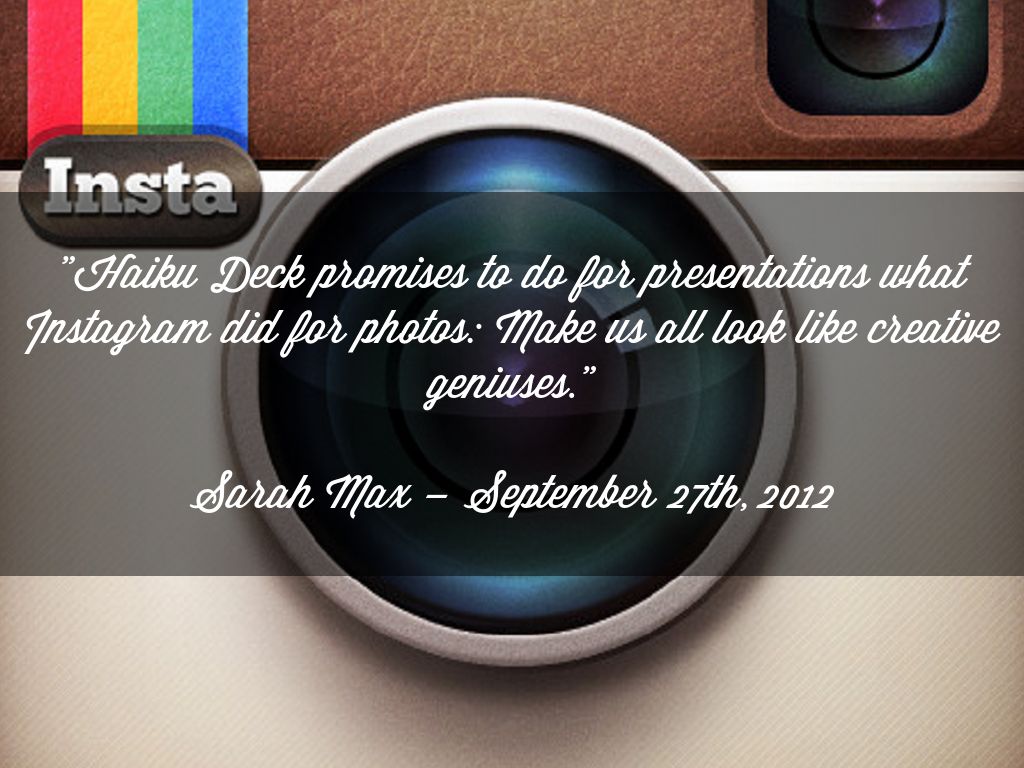 "Haiku Deck promises to do for presentations what Instagram did for photos: Make us all look like creative geniuses."