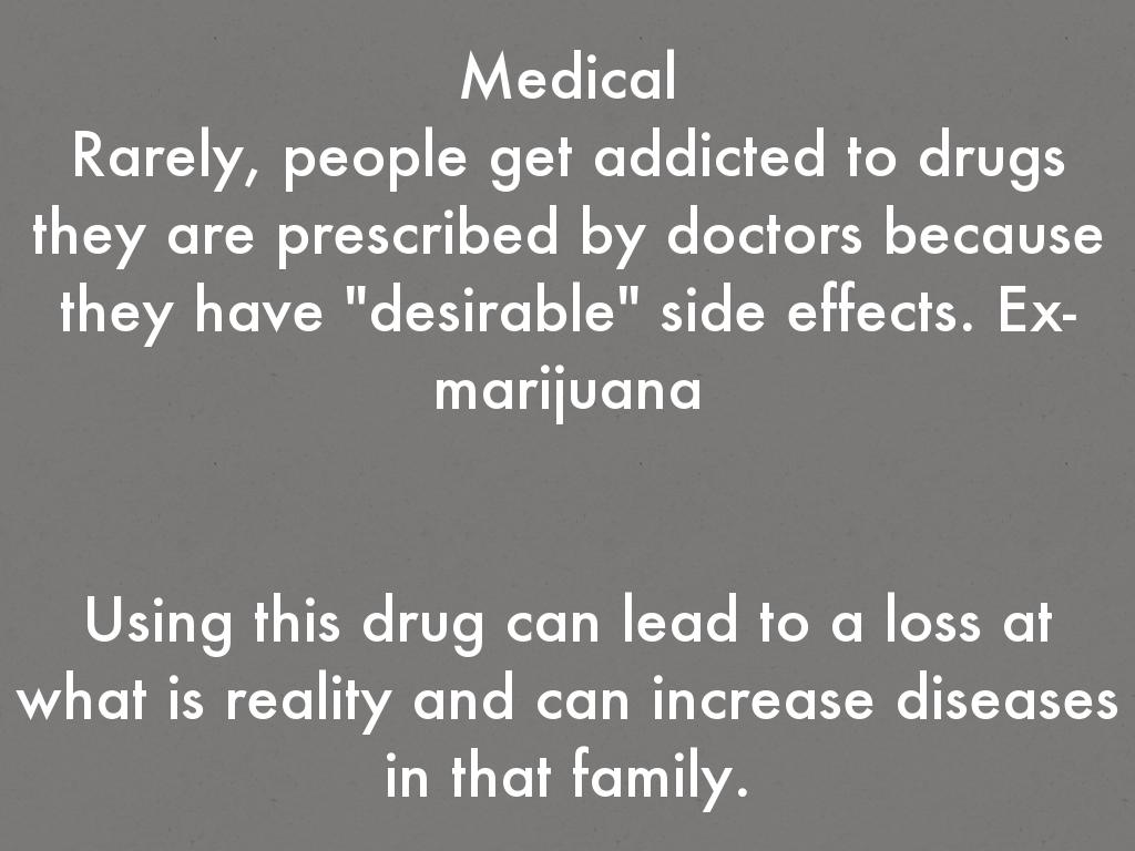 Rarely, people get addicted to drugs they are prescribed by doctors because they have "desirable" side effects. Ex- marijuana