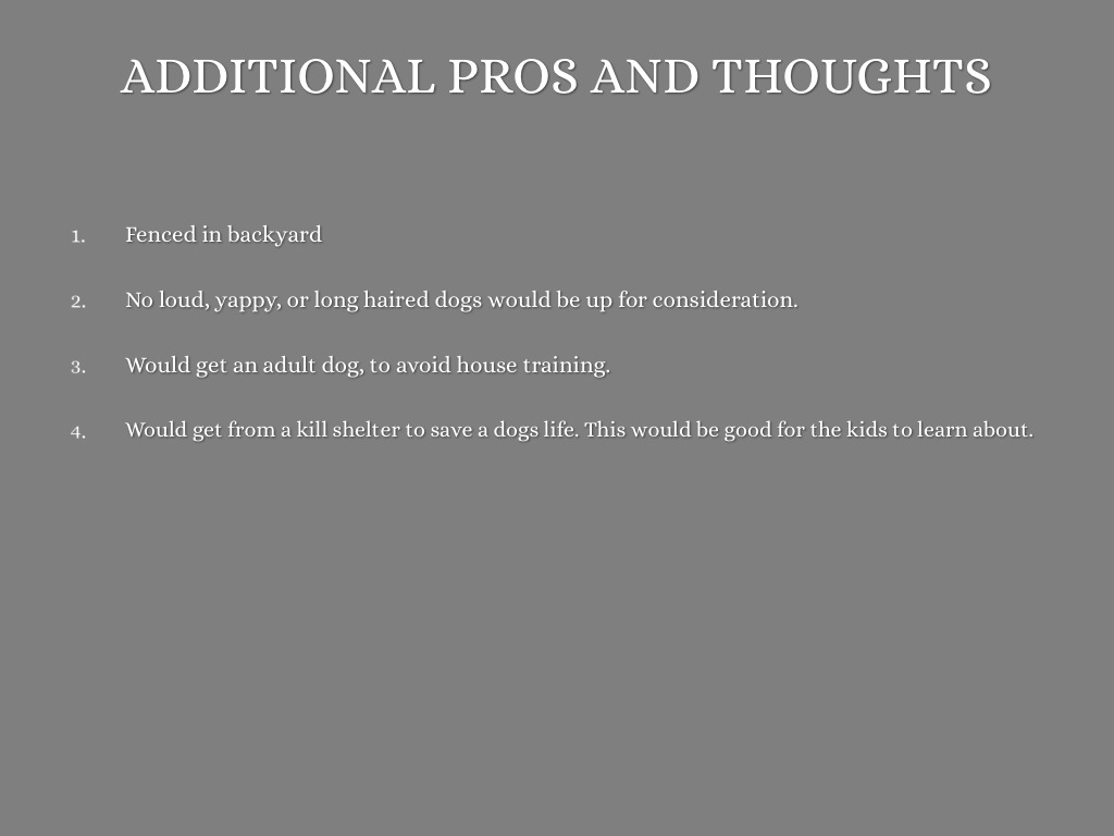 Thank you for listening, and I hope you will seriously consider our family getting a dog to further enrich our lives.