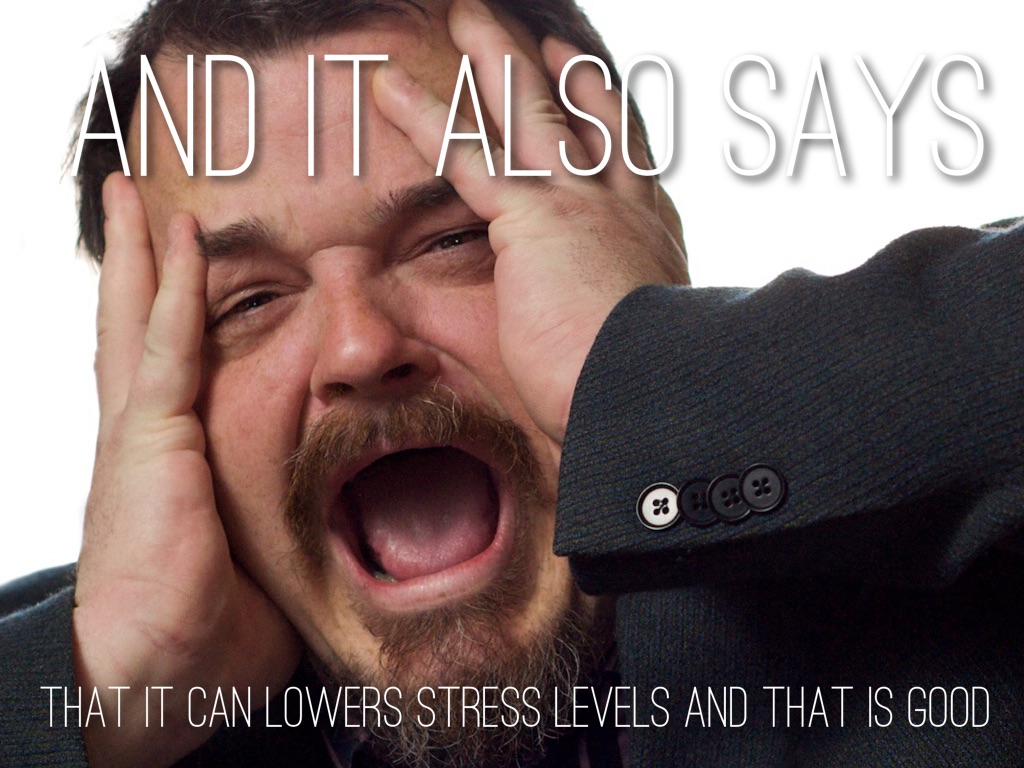 THAT IT CAN LOWERS STRESS LEVELS AND THAT IS GOOD