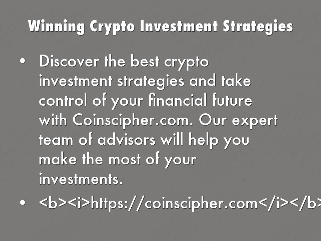 Discover the best crypto investment strategies and take control of your financial future with Coinscipher.com. Our expert team of advisors will help you make the most of your investments.