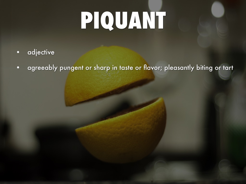 agreeably pungent or sharp in taste or flavor; pleasantly biting or tart