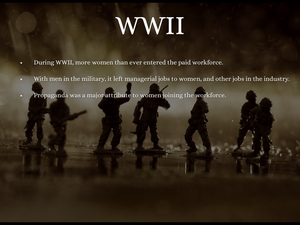 With men in the military, it left managerial jobs to women, and other jobs in the industry.