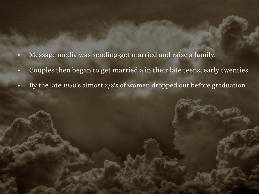 By the late 1950's almost 2/3's of women dropped out before graduation