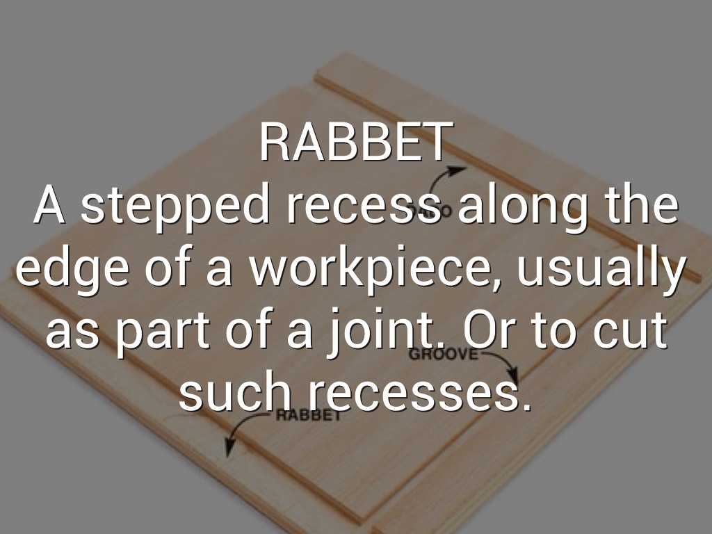 A stepped recess along the edge of a workpiece, usually as part of a joint. Or to cut such recesses.