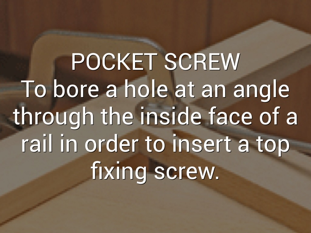 To bore a hole at an angle through the inside face of a rail in order to insert a top fixing screw.