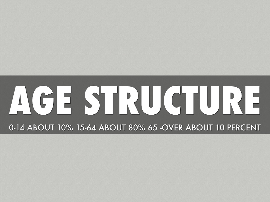 0-14 ABOUT 10% 15-64 ABOUT 80% 65 -OVER ABOUT 10 PERCENT