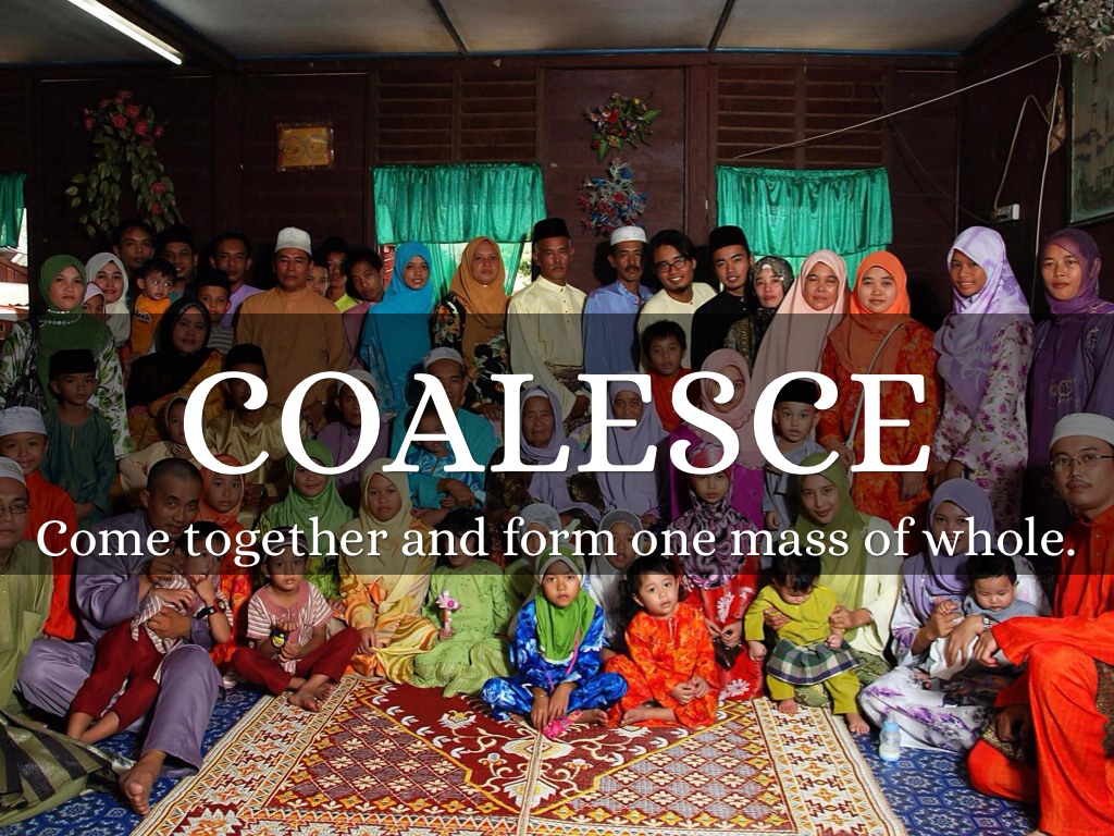 Come together and form one mass of whole.