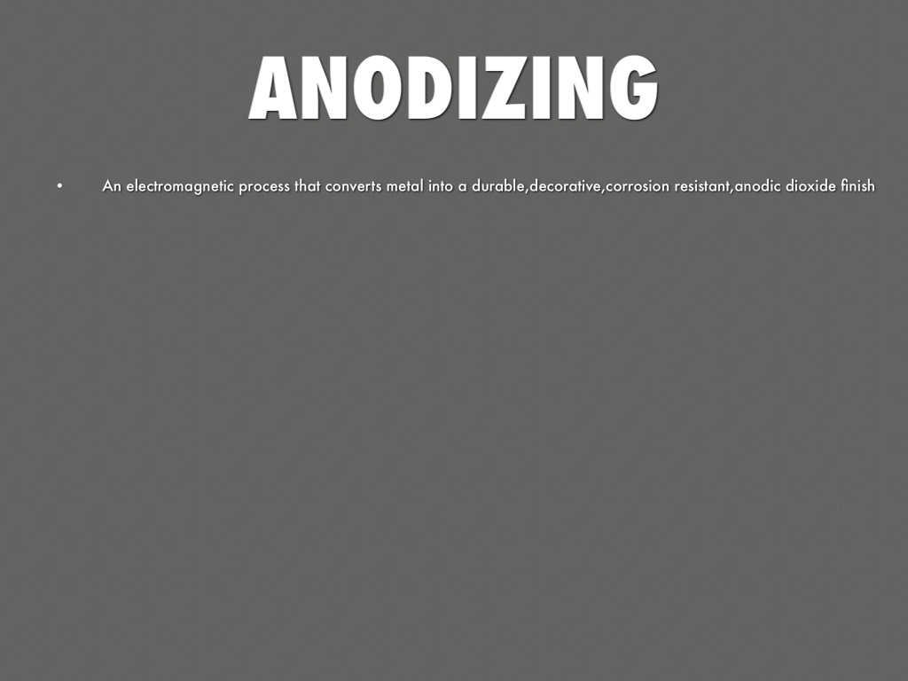 An electromagnetic process that converts metal into a durable,decorative,corrosion resistant,anodic dioxide finish