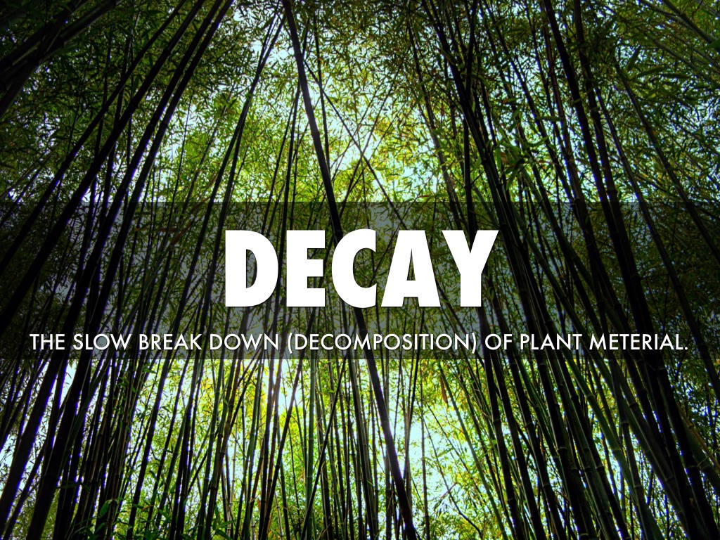 THE SLOW BREAK DOWN (DECOMPOSITION) OF PLANT METERIAL.