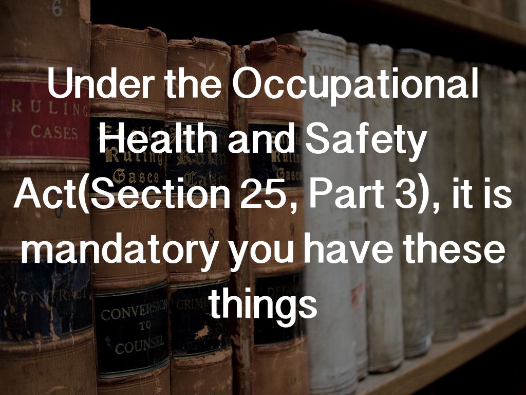 Under the Occupational Health and Safety Act(Section 25, Part 3), it is mandatory you have these things