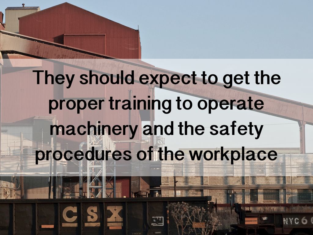 They should expect to get the proper training to operate machinery and the safety procedures of the workplace