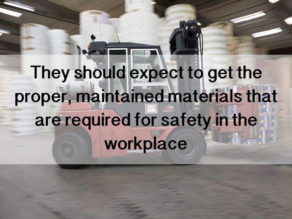 They should expect to get the proper, maintained materials that are required for safety in the workplace