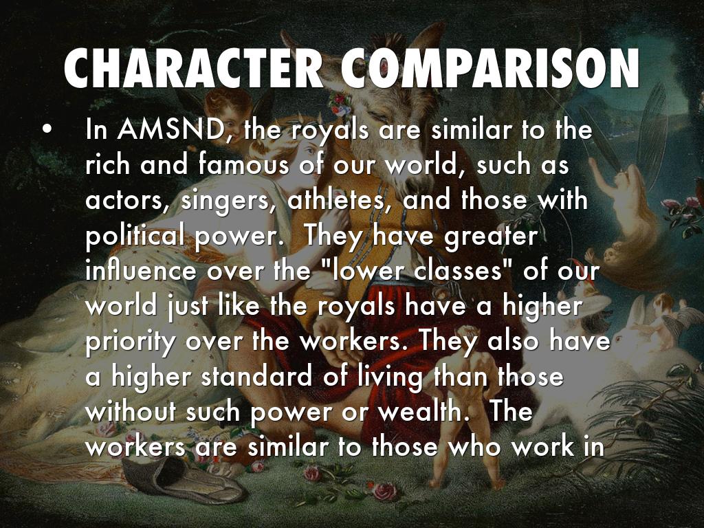 In AMSND, the royals are similar to the rich and famous of our world, such as actors, singers, athletes, and those with political power. They have greater influence over the "lower classes" of our world just like the royals have a higher priority over the workers. They also have a higher standard of living than those without such power or wealth. The workers are similar to those who work in our world. They have blue-collar jobs, whereas in our world, workers can have blue, white, or pink-collar jobs. The fairies in the world of AMSND are similar to the easy-going, fun-loving people of our world who like to party the night away. In both worlds, they can be very troublesome and cause a ruckus.