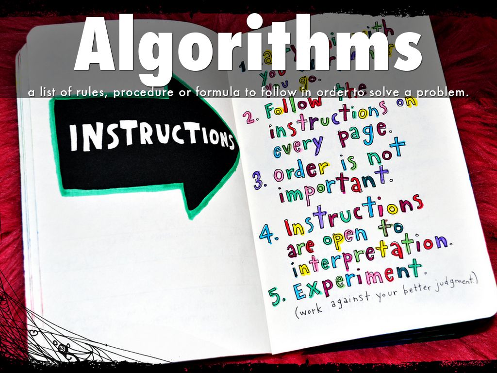 a list of rules, procedure or formula to follow in order to solve a problem.