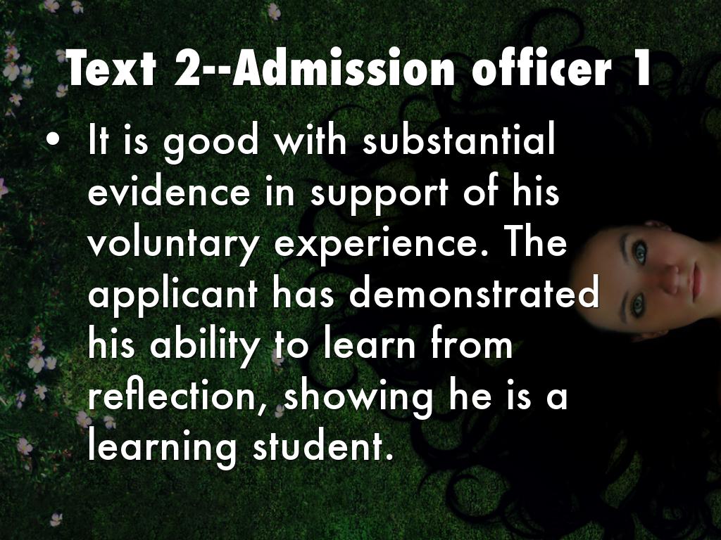 It is good with substantial evidence in support of his voluntary experience. The applicant has demonstrated his ability to learn from reflection, showing he is a learning student.