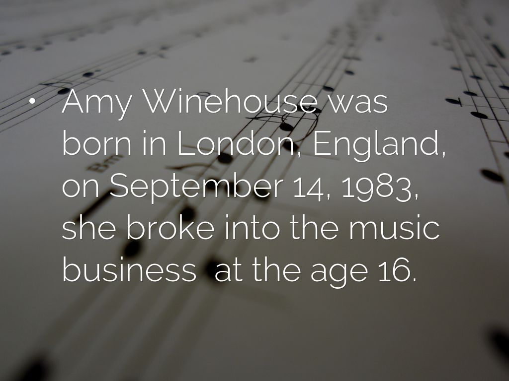 • Amy Winehouse was born in London, England, on September 14, 1983, she broke into the music business at the age 16.