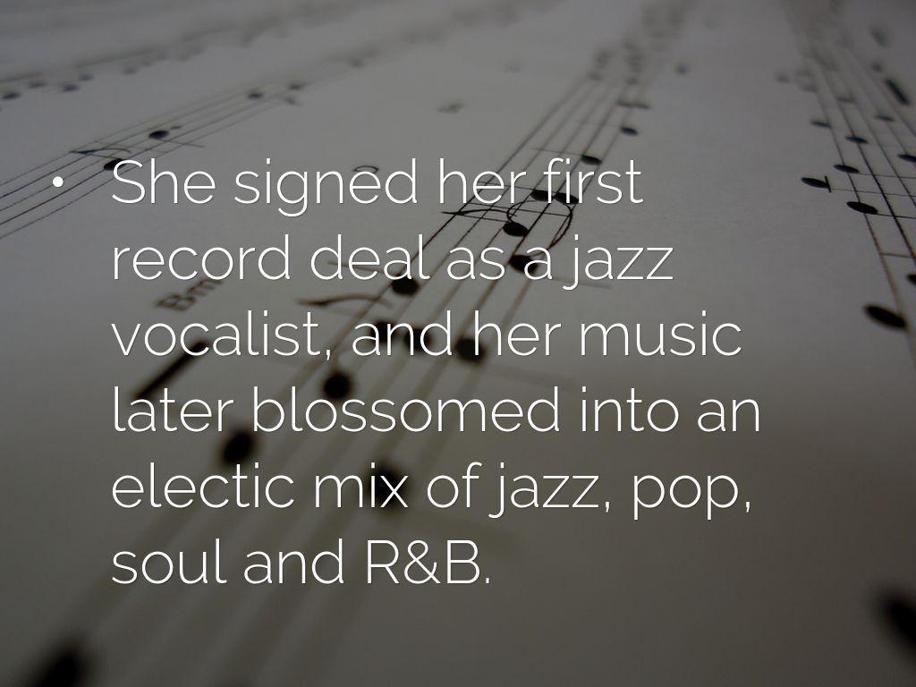 • She signed her first record deal as a jazz vocalist, and her music later blossomed into an electic mix of jazz, pop, soul and R&B.