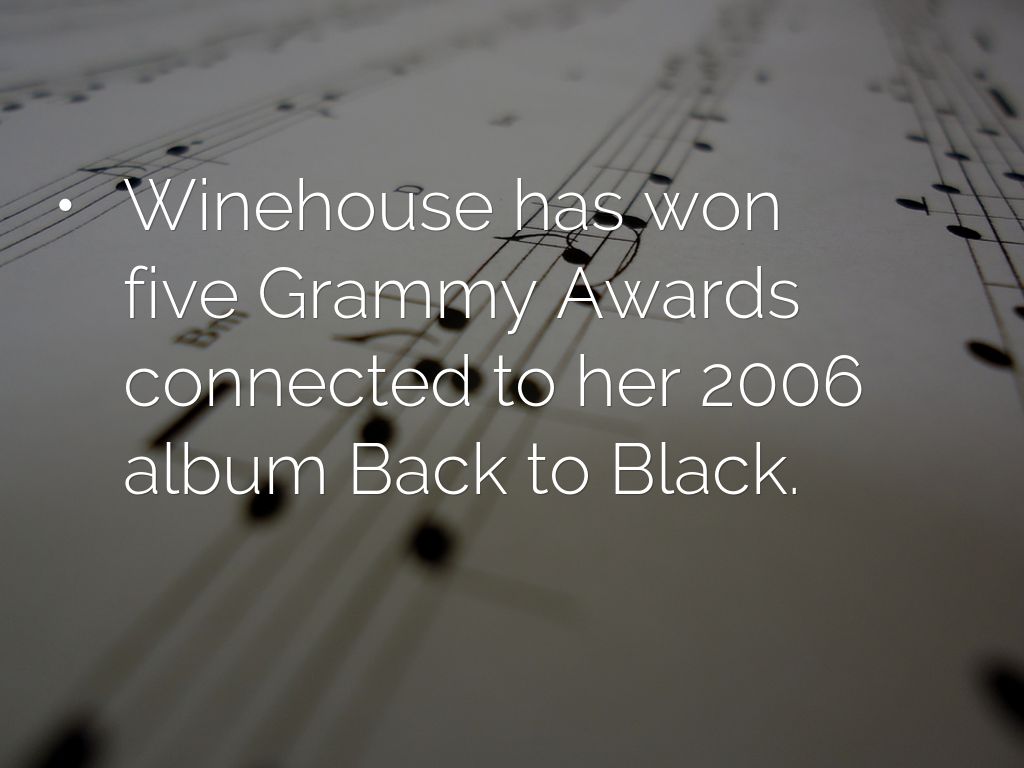 • Winehouse has won five Grammy Awards connected to her 2006 album Back to Black.