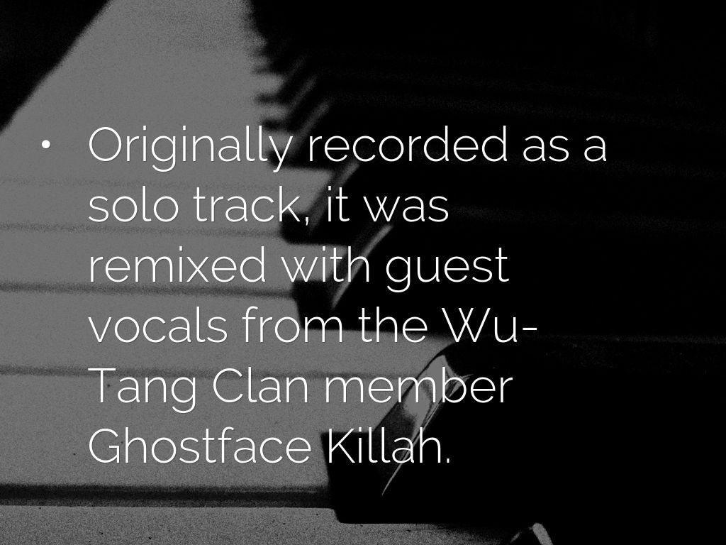 • Originally recorded as a solo track, it was remixed with guest vocals from the Wu-Tang Clan member Ghostface Killah.