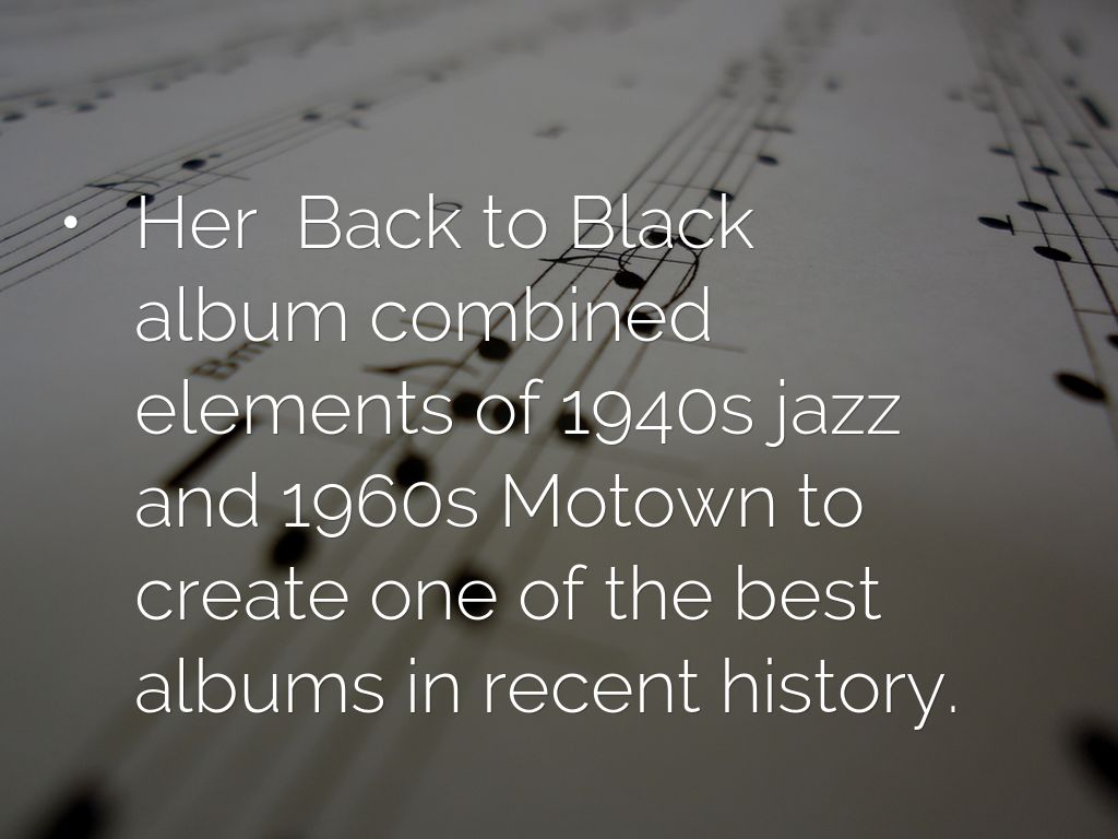 • Her Back to Black album combined elements of 1940s jazz and 1960s Motown to create one of the best albums in recent history.
