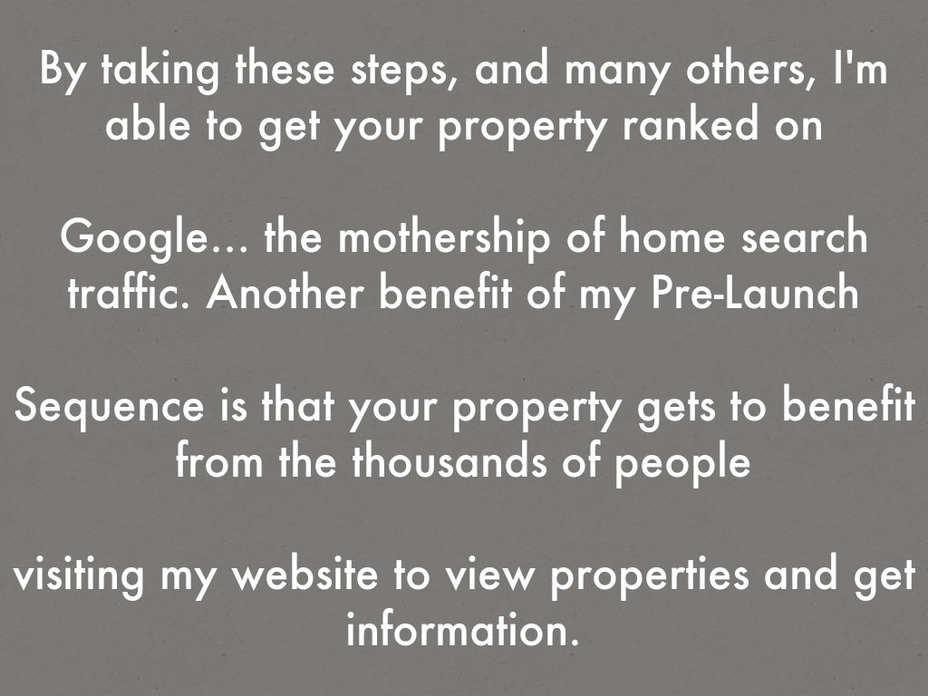 Google… the mothership of home search traffic. Another benefit of my Pre-Launch