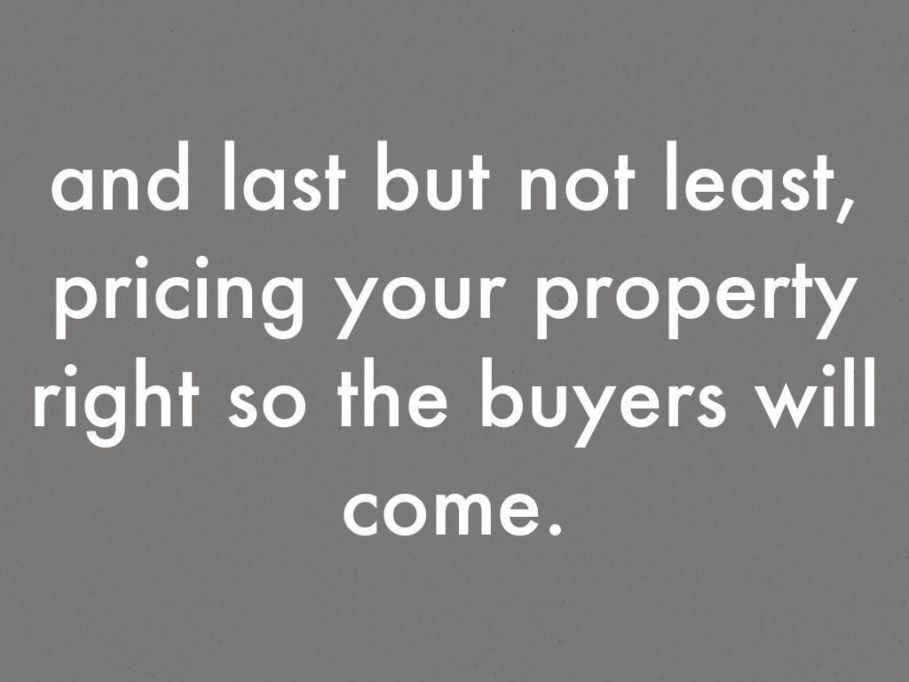 and last but not least, pricing your property right so the buyers will come.