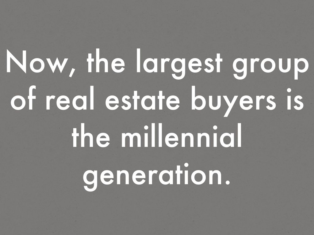 Now, the largest group of real estate buyers is the millennial generation.