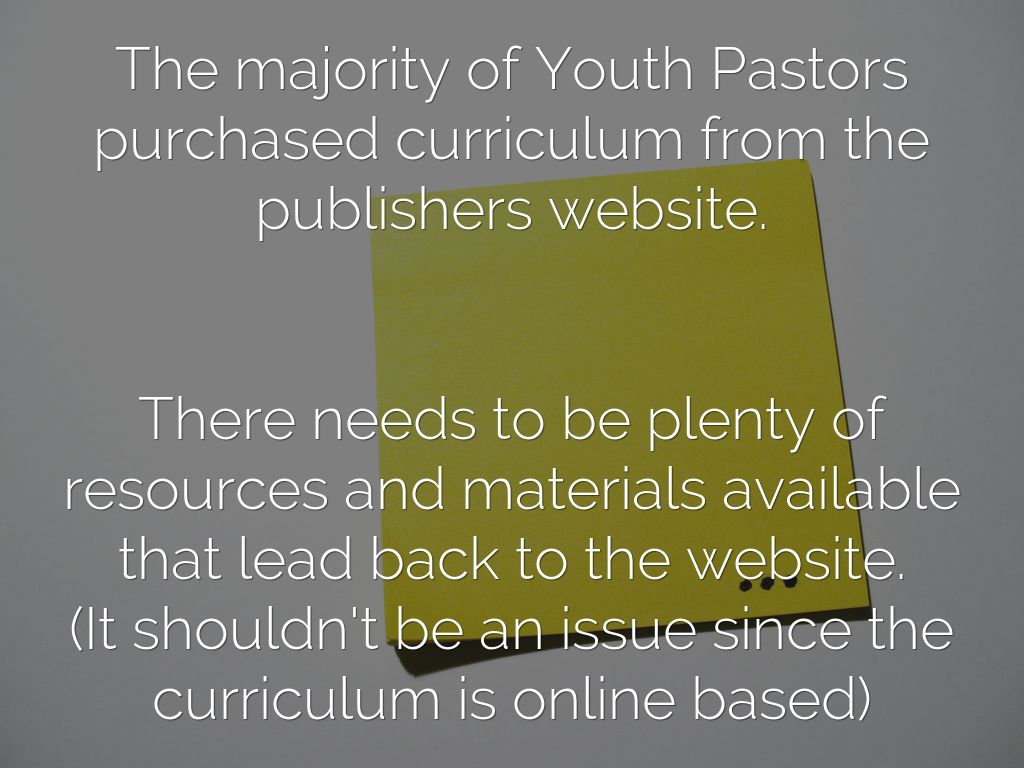 The majority of Youth Pastors purchased curriculum from the publishers website.