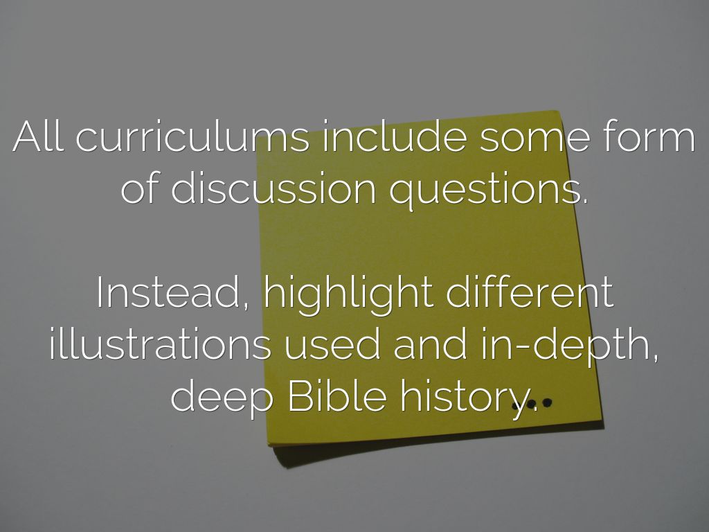 Instead, highlight different illustrations used and in-depth, deep Bible history.