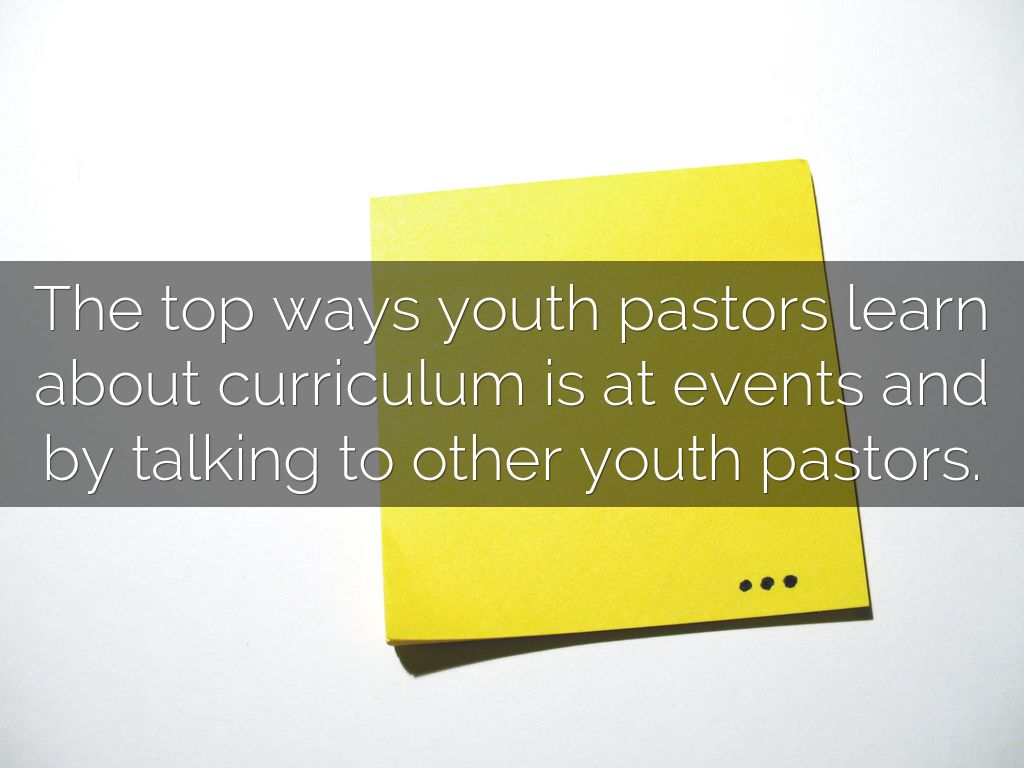 The top ways youth pastors learn about curriculum is at events and by talking to other youth pastors.