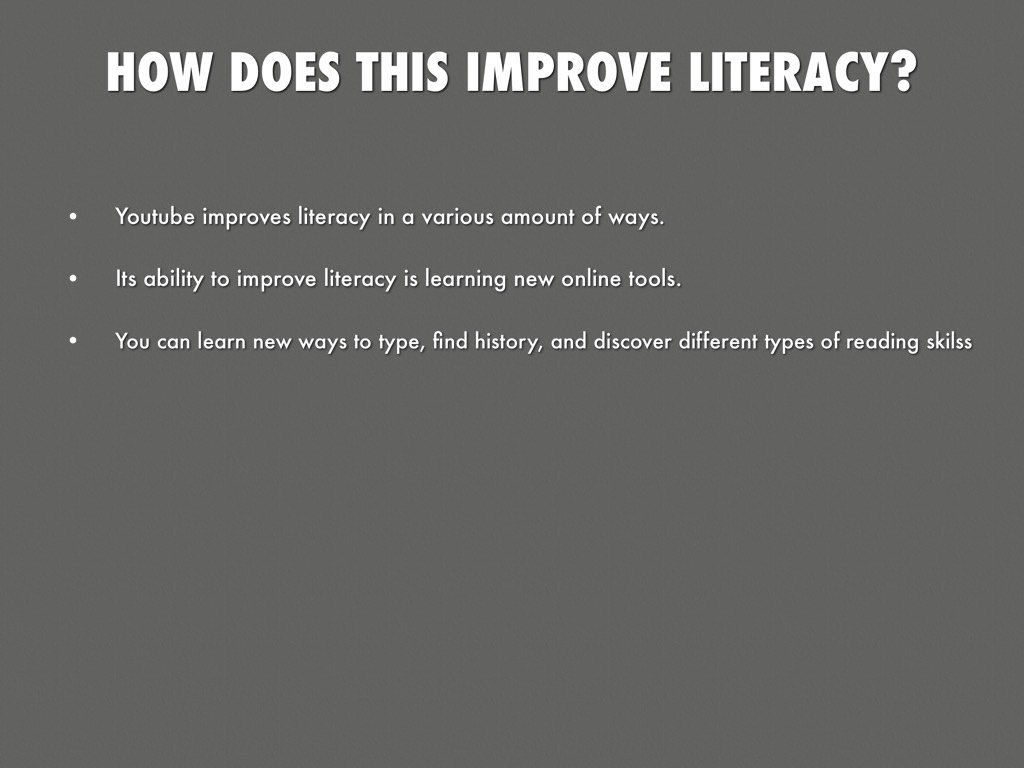 Youtube improves literacy in a various amount of ways.
