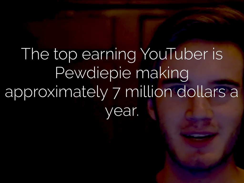 The top earning YouTuber is Pewdiepie making approximately 7 million dollars a year.