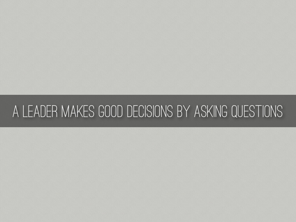 A LEADER MAKES GOOD DECISIONS BY ASKING QUESTIONS