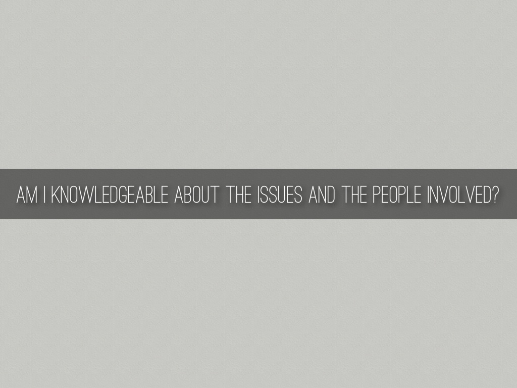 AM I KNOWLEDGEABLE ABOUT THE ISSUES AND THE PEOPLE INVOLVED?