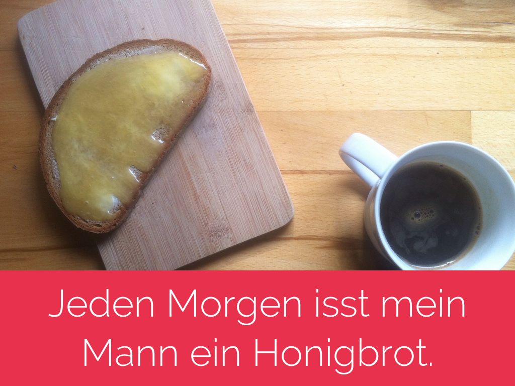 Jeden Morgen isst mein Mann ein Honigbrot.