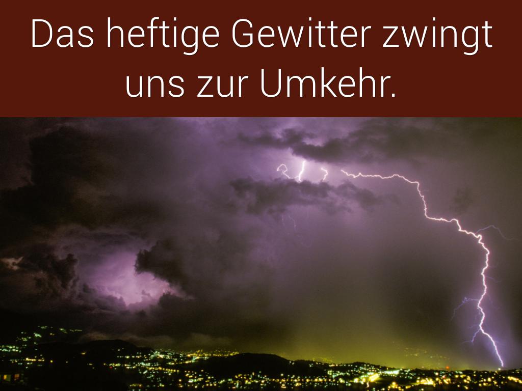Das heftige Gewitter zwingt uns zur Umkehr.