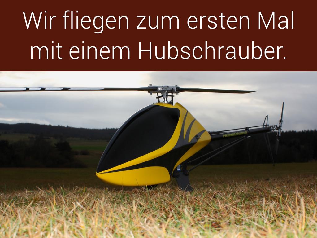 Wir fliegen zum ersten Mal mit einem Hubschrauber.