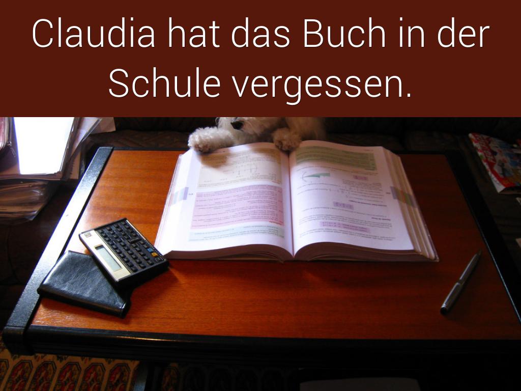 Claudia hat das Buch in der Schule vergessen.