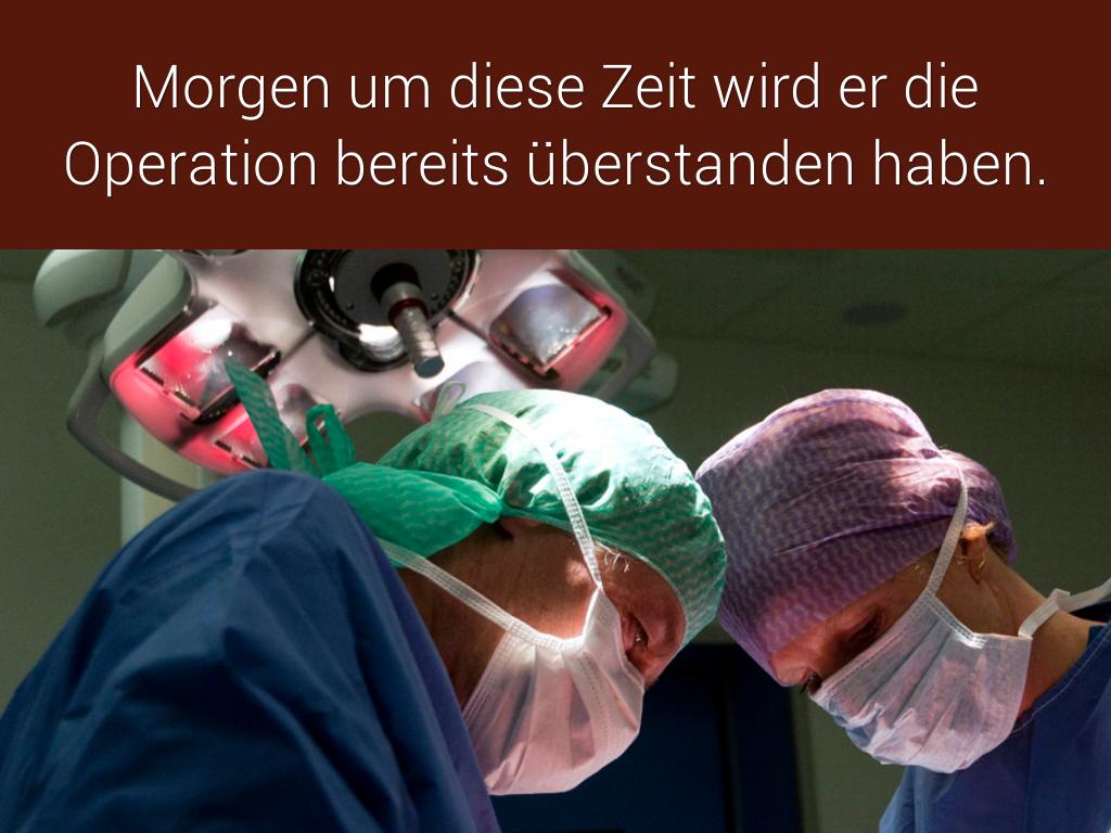 Morgen um diese Zeit wird er die Operation bereits überstanden haben.